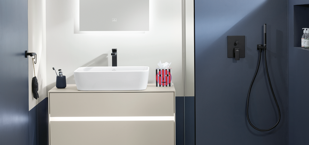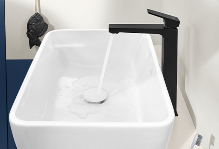 Το χρωμέ ταιριάζει άψογα με τα γραμμικά σχήματα της συλλογής και αναδεικνύει την ομορφιά των βρυσών και των αξεσουάρ μπάνιου. - Το μαύρο ματ δημιουργεί σαφείς αντιθέσεις ή συμπληρώνει κομψά τις ματ επιφάνειες του επιλεγμένου κεραμικού.