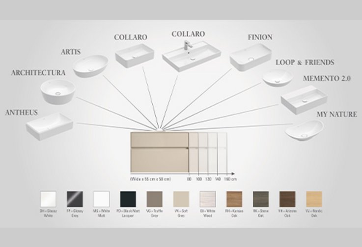 - Έπιπλα μπάνιου που συνδυάζονται αρμονικά με τους νιπτήρες επίπλου, αλλά και τους επιτραπέζιους νιπτήρες από τη συλλογή Collaro καθώς και με πολλές άλλες συλλογές.