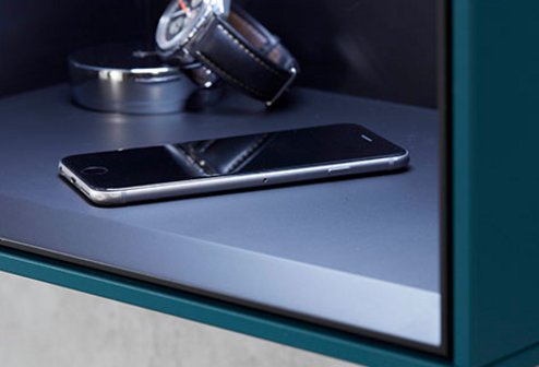 - Κατόπιν αιτήματος μπορεί να ενσωματωθεί ένας ασύρματος σταθμός φόρτισης smartphone στο πλαϊνό ντουλάπι και στα ράφια.