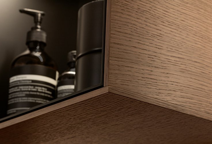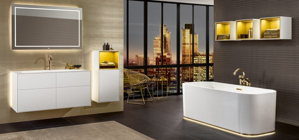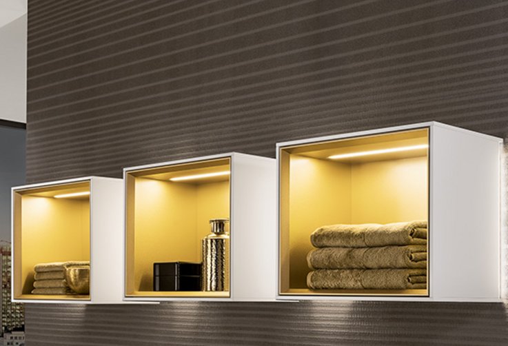 - Έμμεσος φωτισμός ραφιών καθώς και φωτισμός τοίχου για τα έπιπλα μπάνιου.