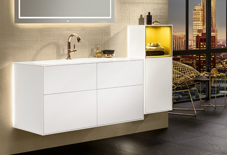 Με τα λεπτά σχήματα, τα εκλεκτά υλικά και τα έξυπνα χαρακτηριστικά, η συλλογή μπάνιου Finion της Villeroy & Boch κάνει μια κομψή δήλωση στον τομέα premium. Με μια μεγάλη ποικιλία επιλογών είναι ιδανική για τη δημιουργία πολυτελών μπάνιων στα οποία κάθε λεπτομέρεια ανταποκρίνεται στις πιο απαιτητικές απαιτήσεις του σύγχρονου τρόπου ζωής.