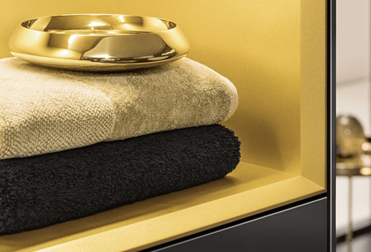 - Έπιπλα μπάνιου, ψηλά ντουλάπια και πλαϊνά ντουλάπια στην καθαρή σχεδιαστική γραμμή της συλλογής Finion.