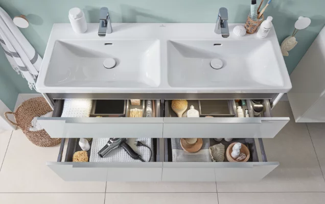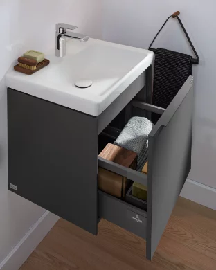 The bathroom furniture offers plenty of space for all your bathroom items. And you’re all prepared for any additions to your paraphernalia.